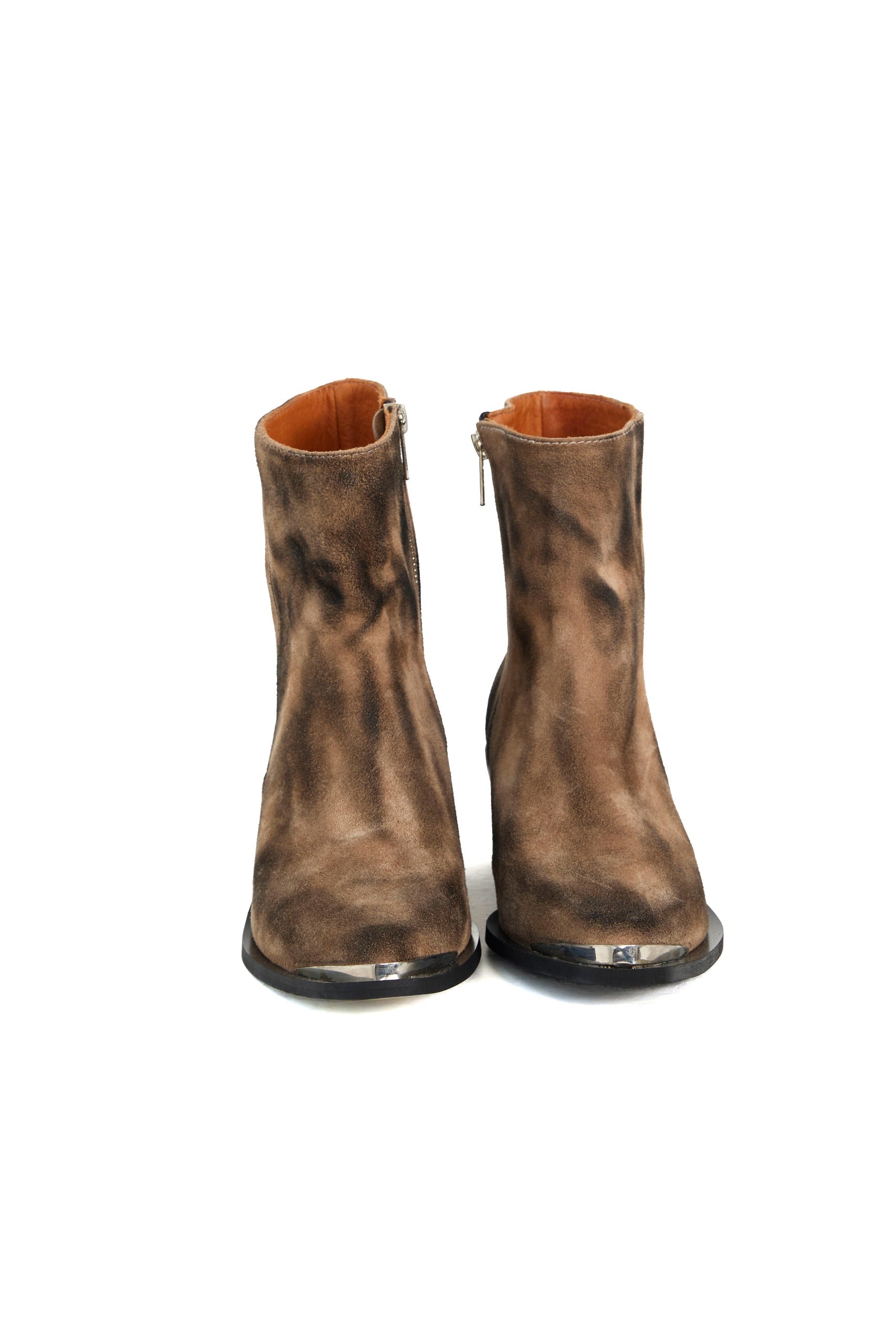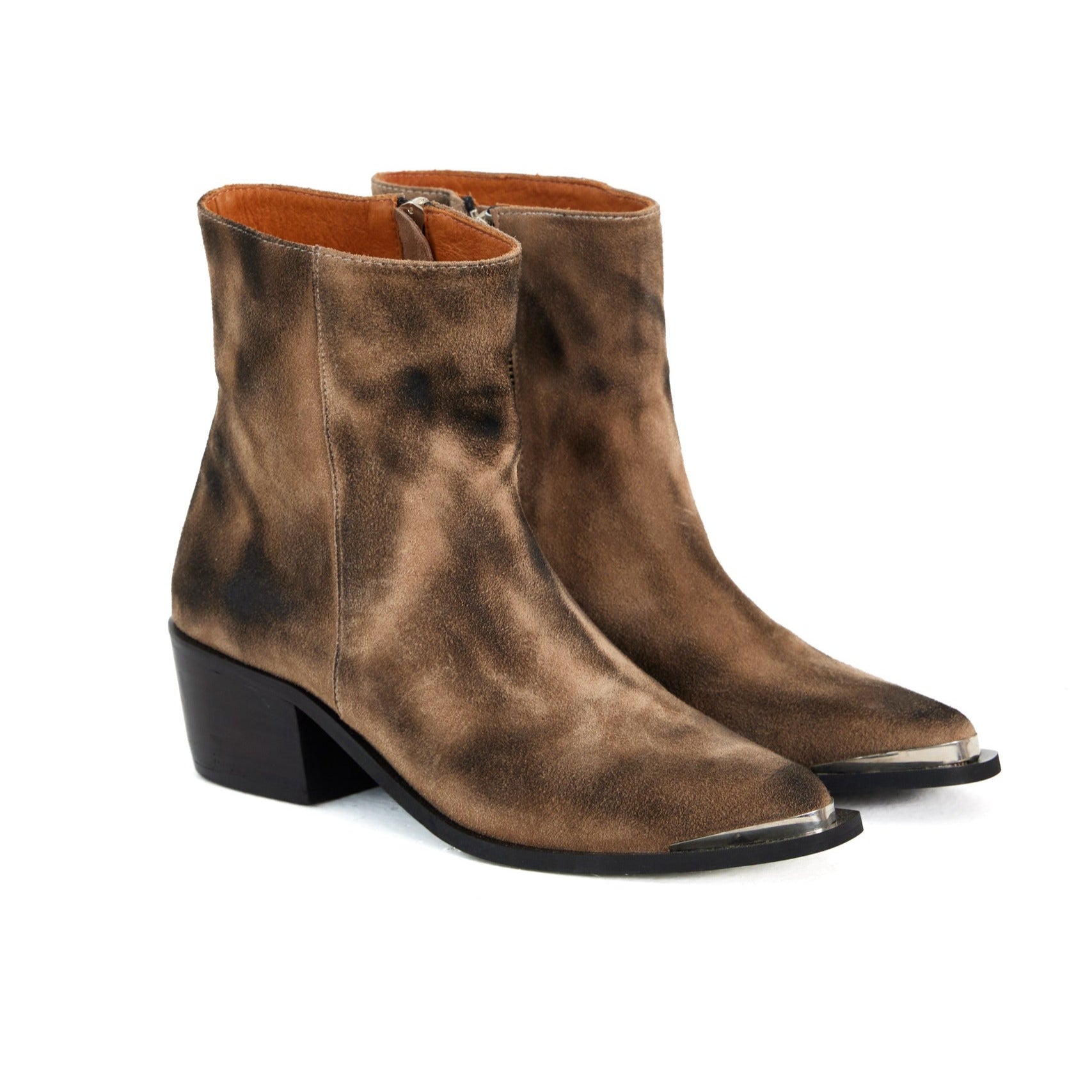 Botineta en cuero descane vison con cierre interno y taco 5 cm