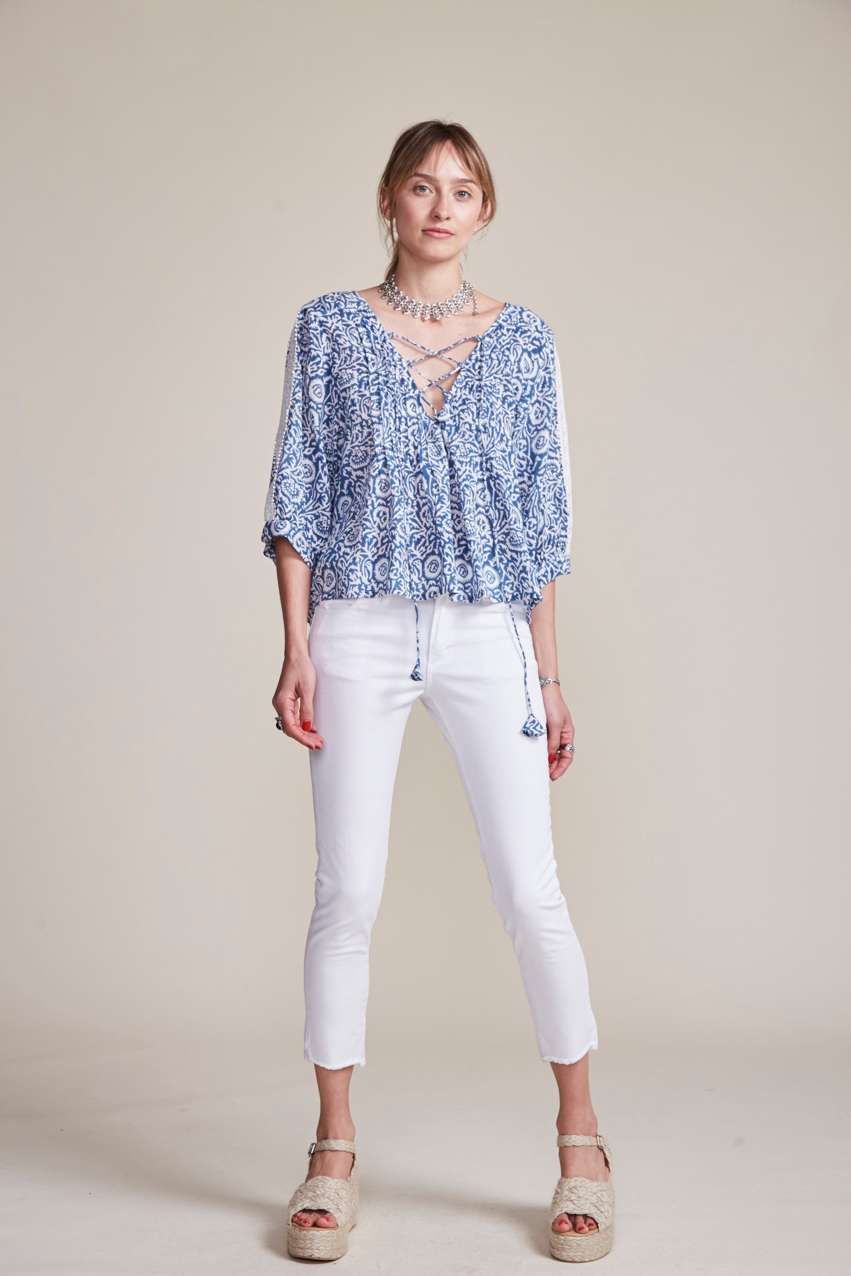 Chupín clásico. Cinco bolsillos.Tiro medio. Ruedo deflecado.