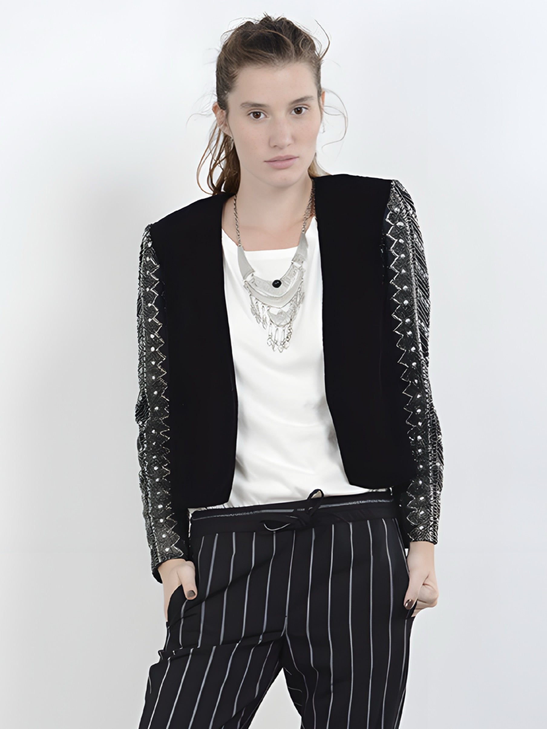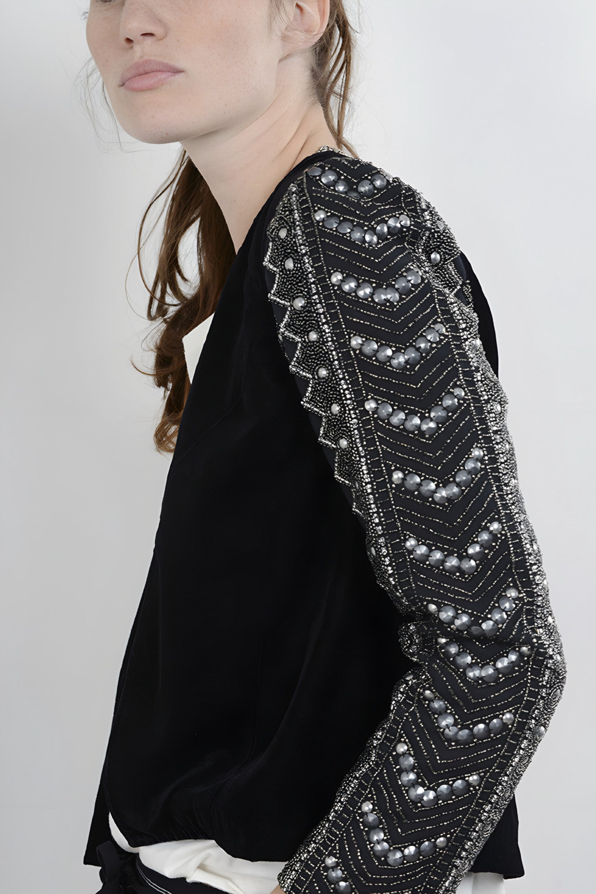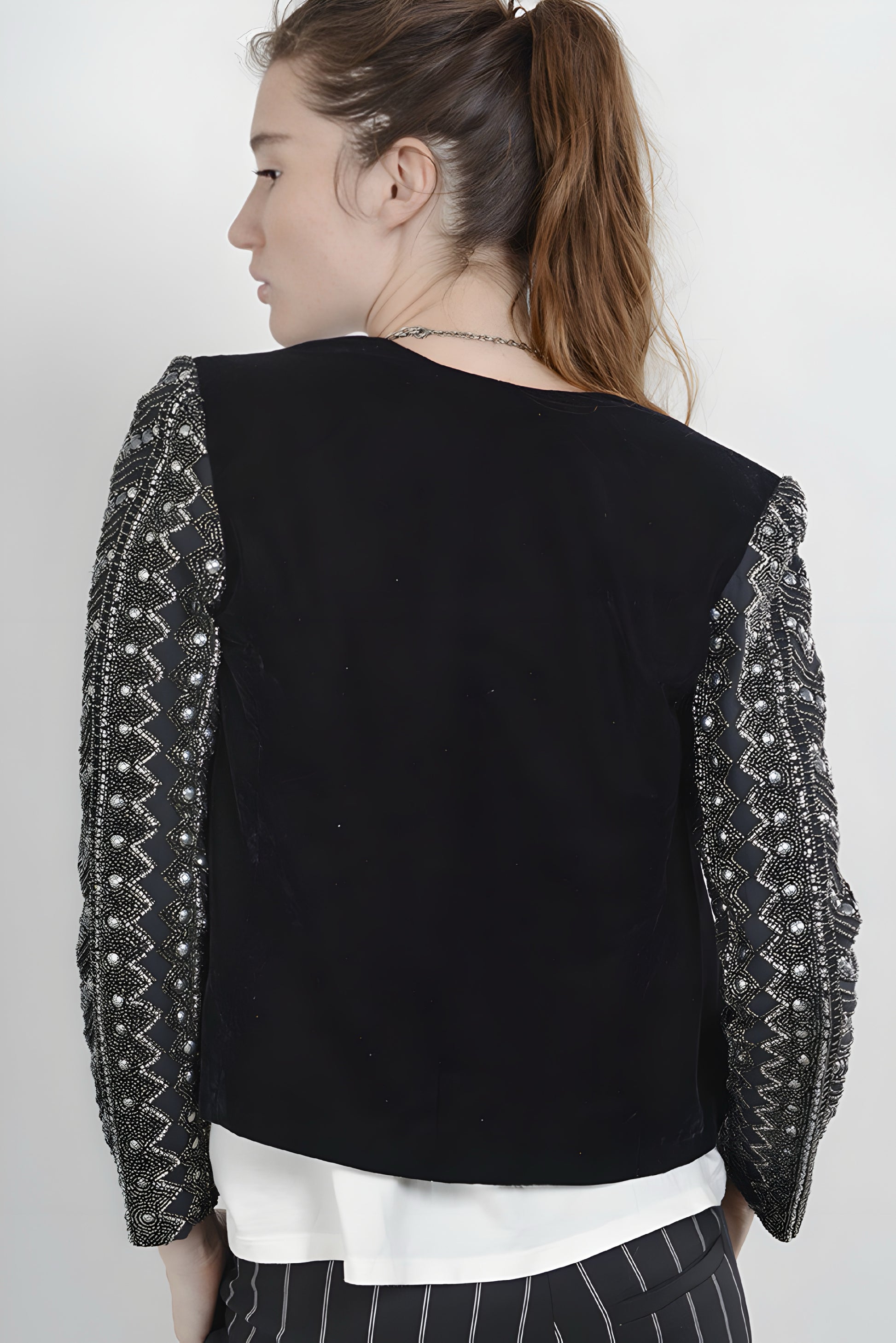 Saco manga larga de terciopelo con bordado en mangas.