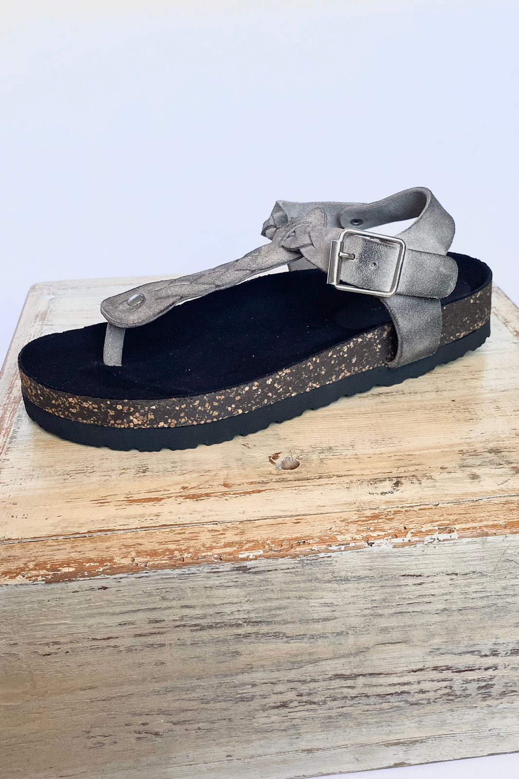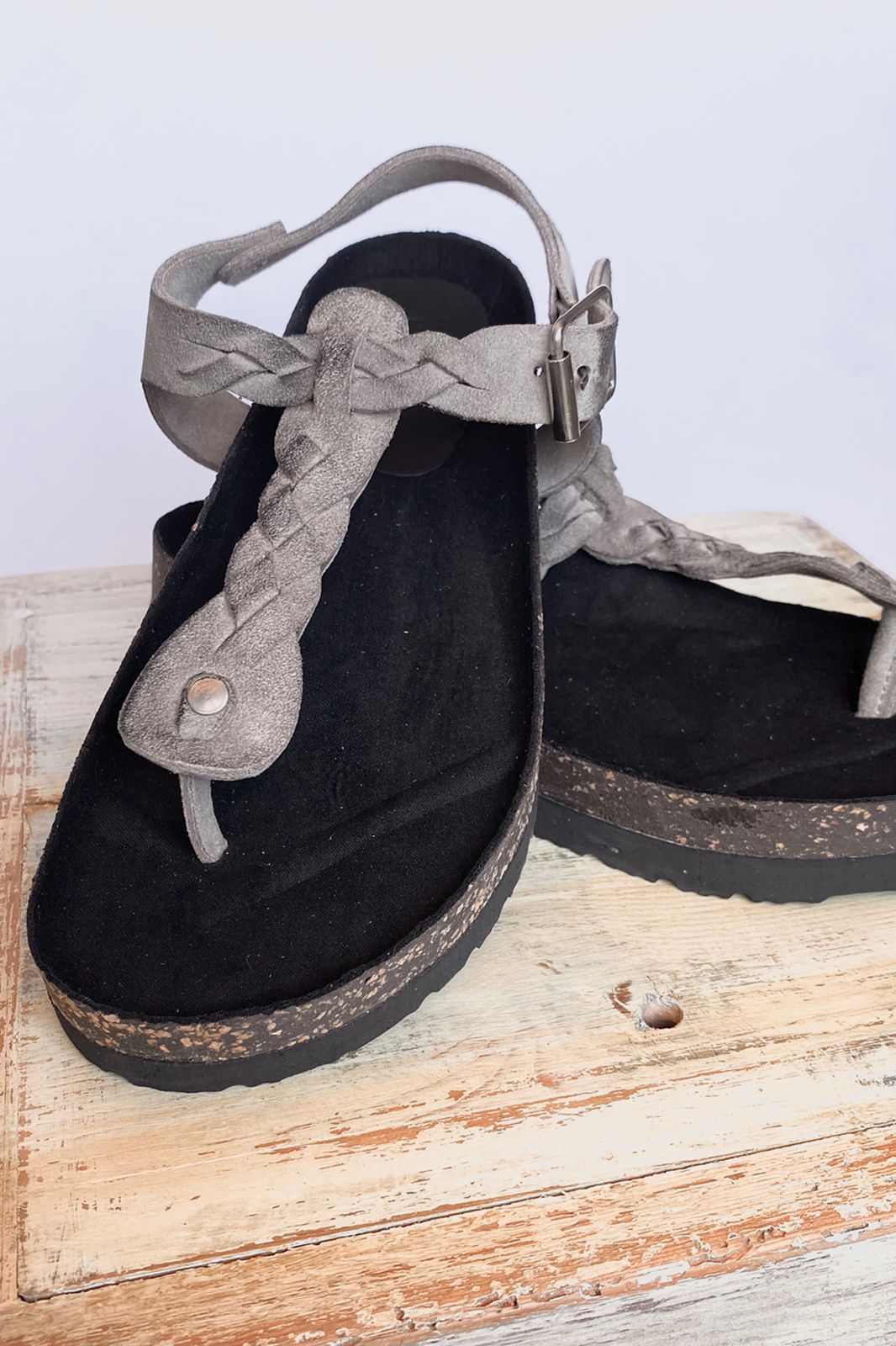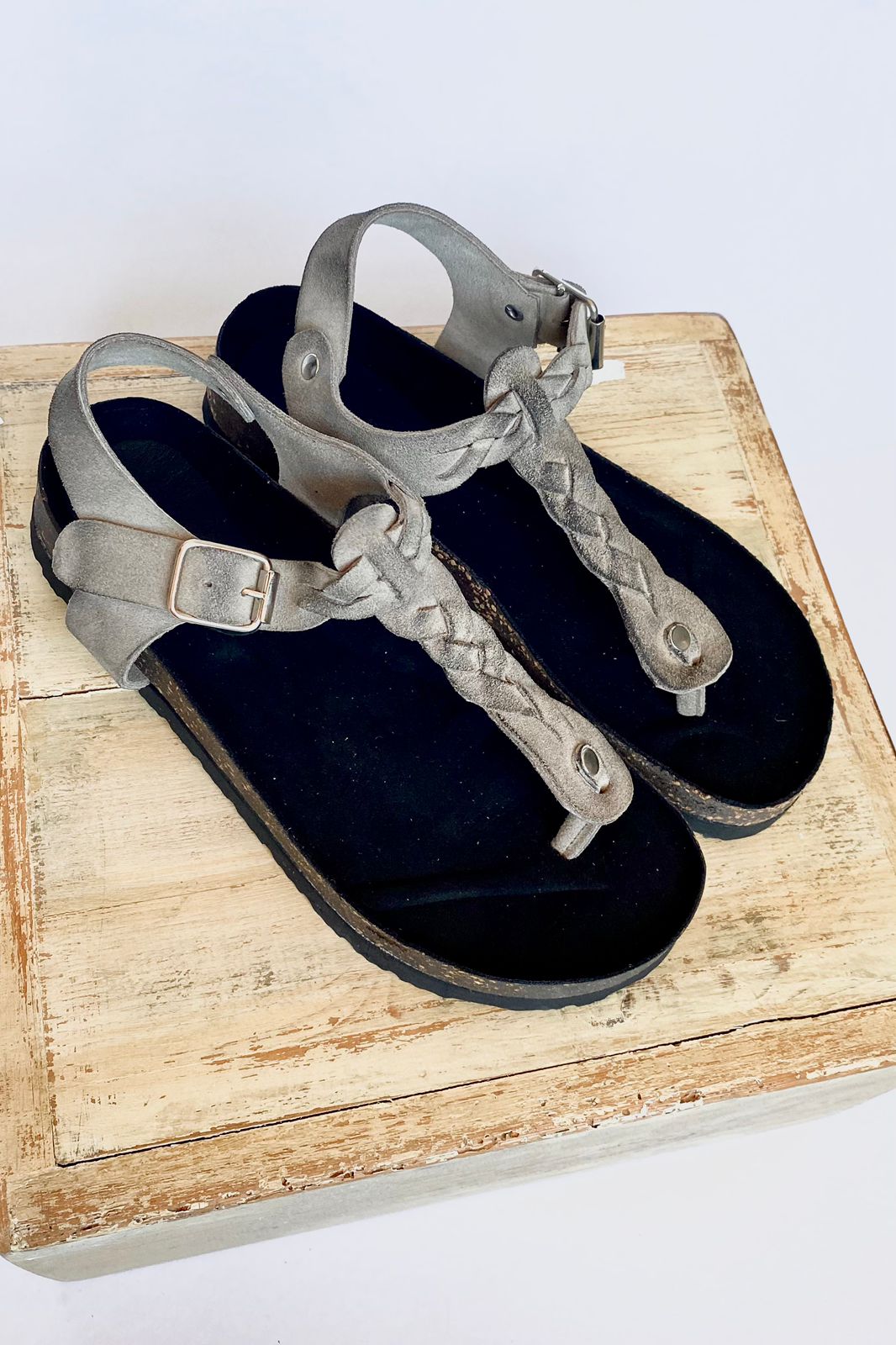 Sandalia ojota de cuero trenzado colo vison sobre base tipo Birk.